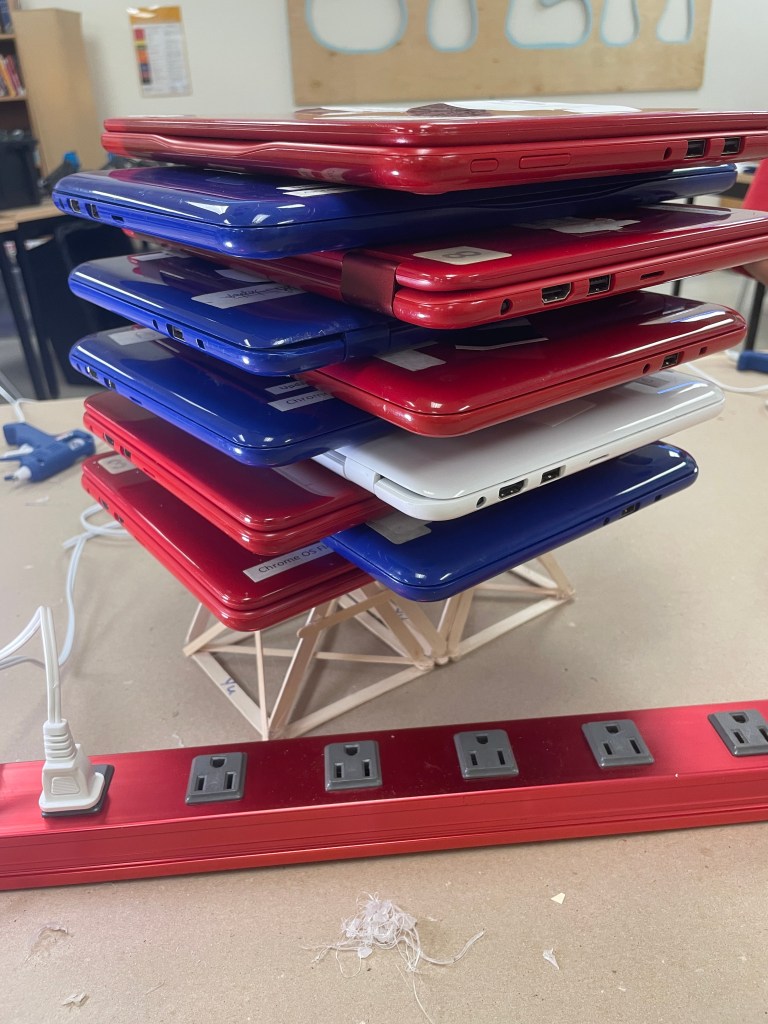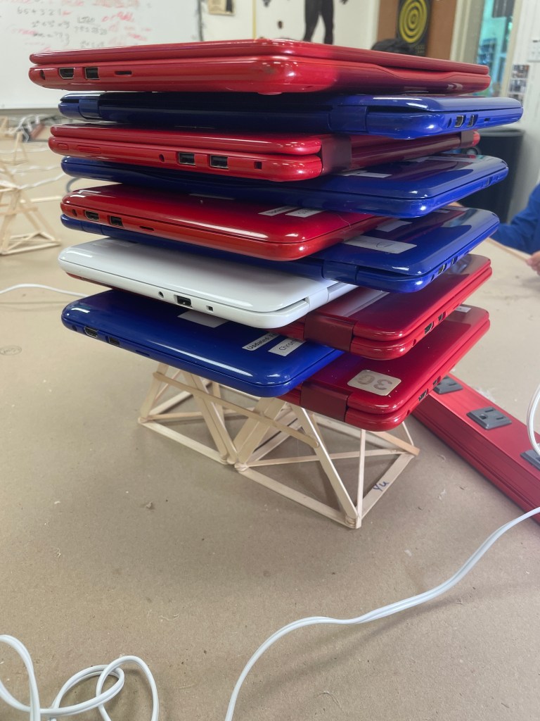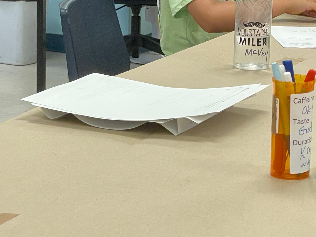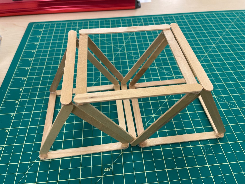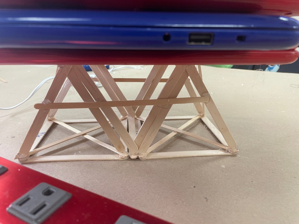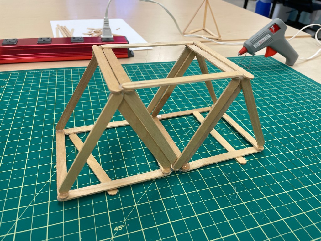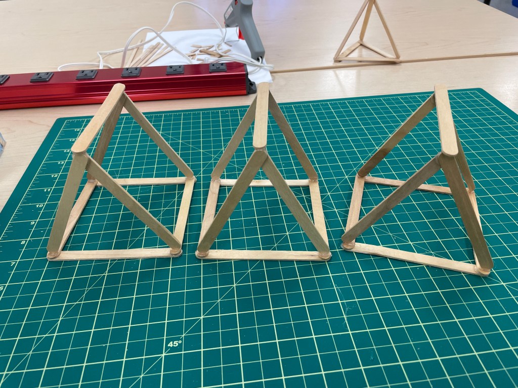 ENG-Day 4 Today, we built triangular prisms. We also made paper trusses. We Flew our rockets too. Over 20 feet (6 meters).